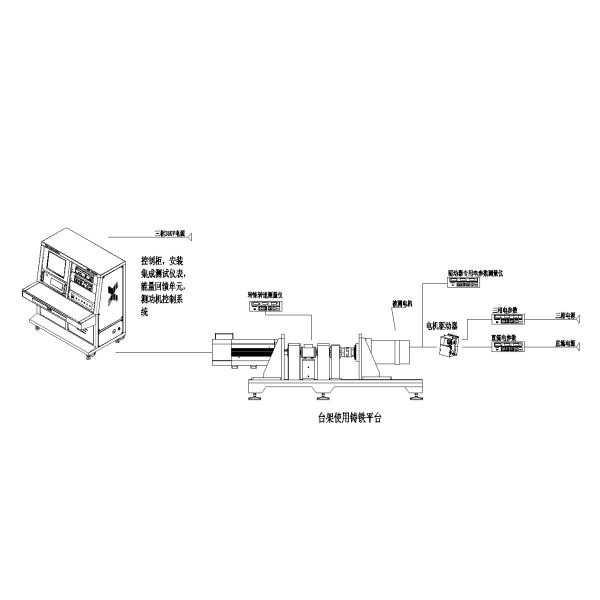 2.測試原理:測試過程中,電機啟動后帶動電力測功機旋轉,通過計算機給電力測功機程控加載,同時電腦上自動記錄數據,加載過程中記錄每個點的數據,待所有數據記錄后,生成報表和曲線。