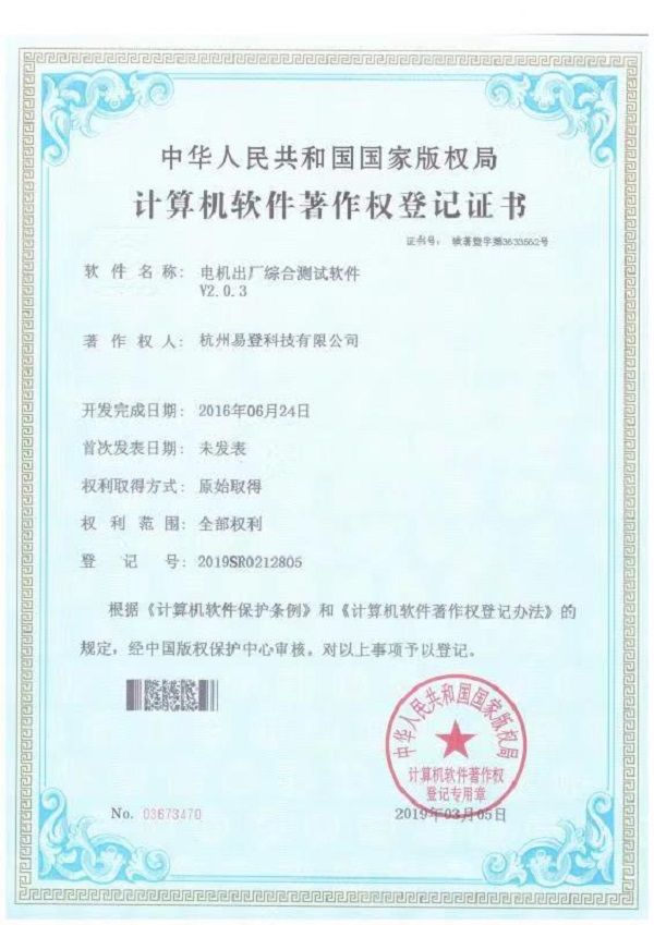 電機(jī)出廠綜合測試軟件證書