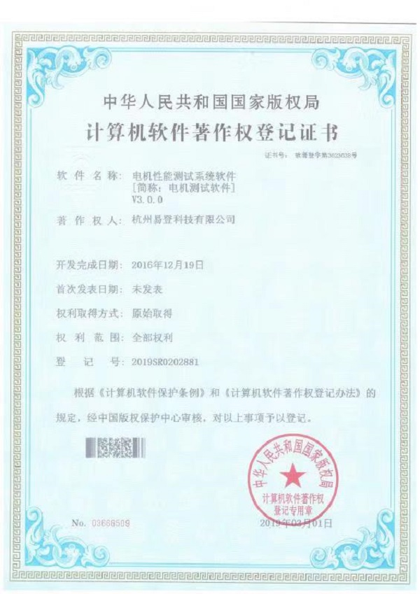 電機性能測試系統軟件證書