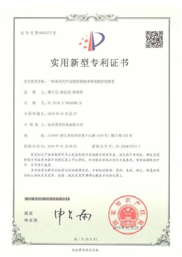 電機電控裝置專利證書